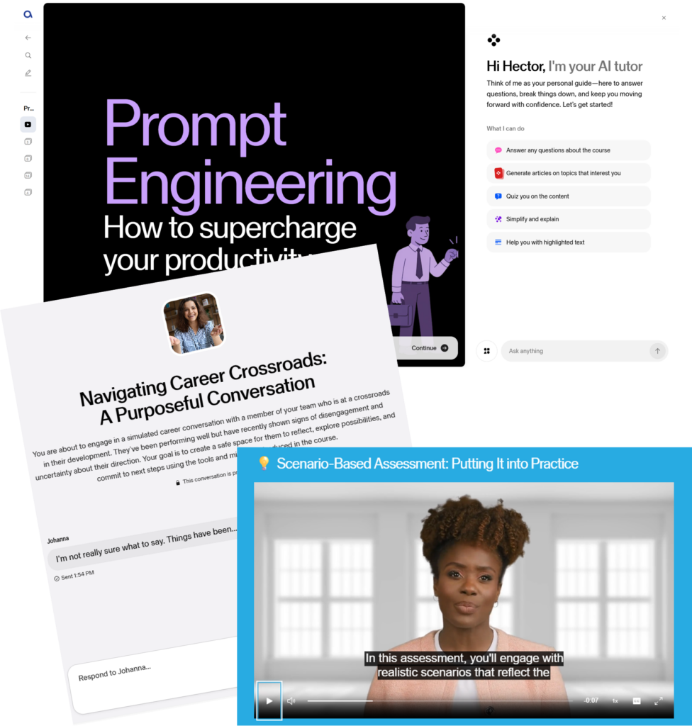 - Adaptive AI Learning Paths – Adaptive AI ensures that every learner receives tailored content based on their skills, roles, and progress.